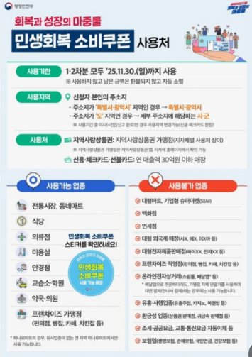 민생회복 소비쿠폰은 행정안전부가 2025년 하반기 민생 안정과 내수 진작을 위해 전 국민에게 지급하는 소비 활성화 지원금이다.